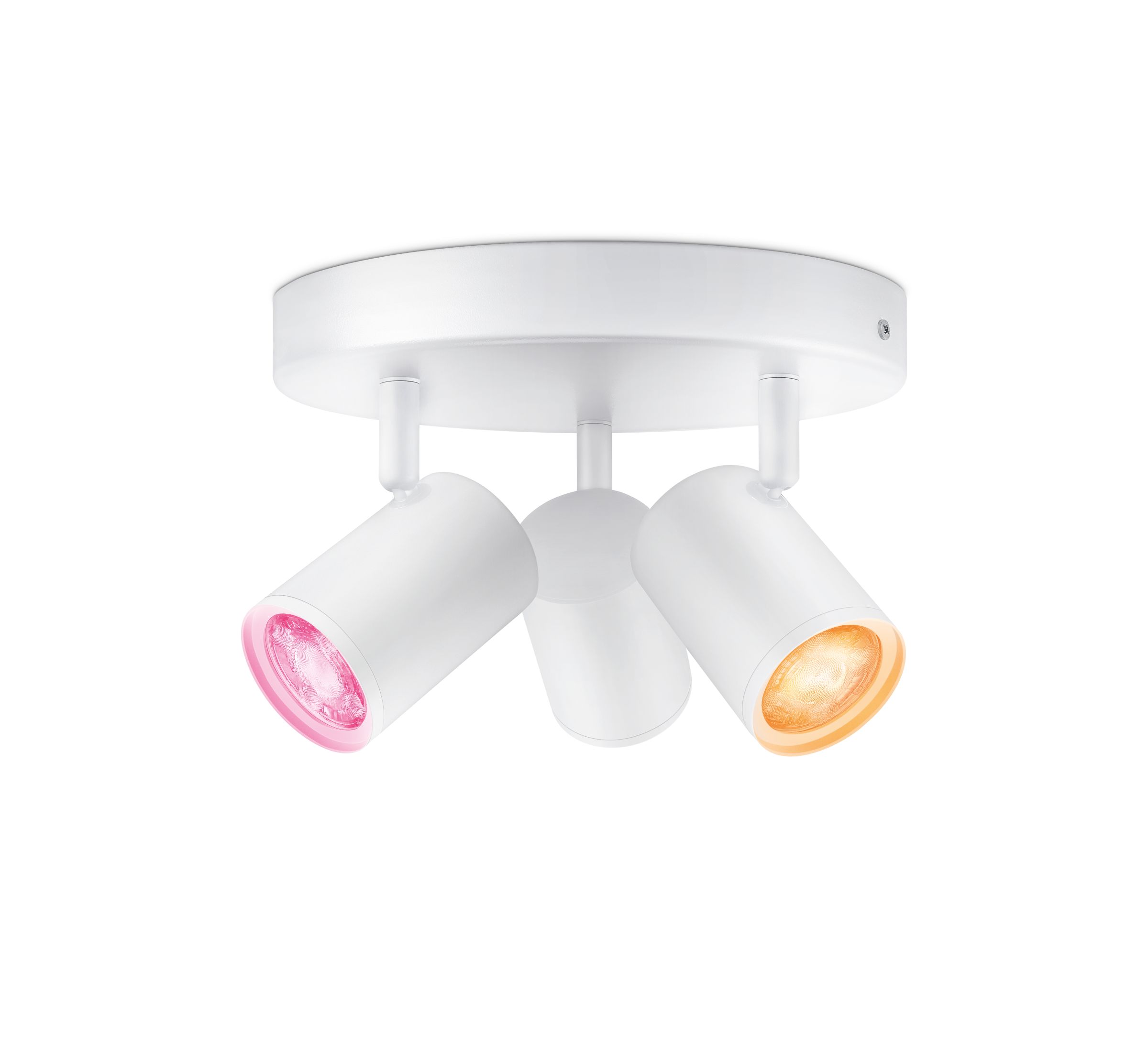 Τρία ρυθμιζόμενα σποτ σε μια κομψή, κυκλική βάση οροφής σας προσφέρουν πολλές διαφορετικές επιλογές για να πλημμυρίσει ο χώρος σας με υπέροχο φωτισμό και χρώμα. Επιλέξτε ένα σκηνικό φωτισμού για μια συγκεκριμένη δραστηριότητα με το φωτιστικό Build-on Spots ή αφήστε την εφαρμογή μας να κάνει όλη τη δουλειά με τις αυτοματοποιημένες ρυθμίσεις φωτισμού.