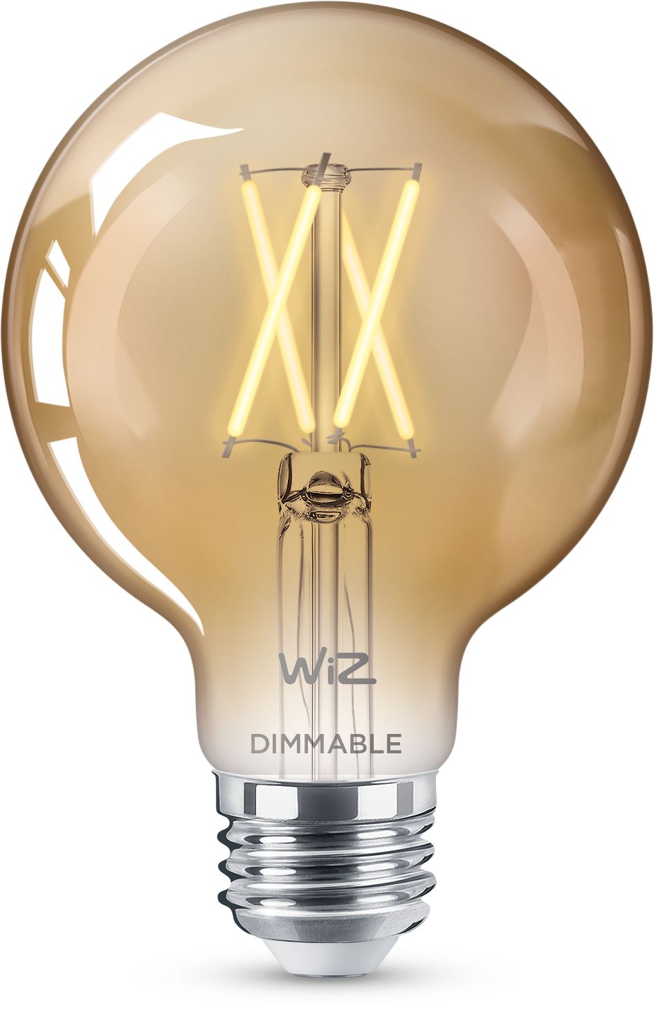 Enjoy more convenience in everyday life with this smart WiZ LED G25 vintage globe-shape bulb. Amber coated classic look – perfect for decorative fixtures. This bulb gives soft white light that dims to your desired brightness level via app or voice. You can set schedule to turn lights on and off according to your daily or weekly routines, and have remote access to your lights even when you're away. WiZ lights connect to your existing Wi-Fi, no additional hardware is needed.