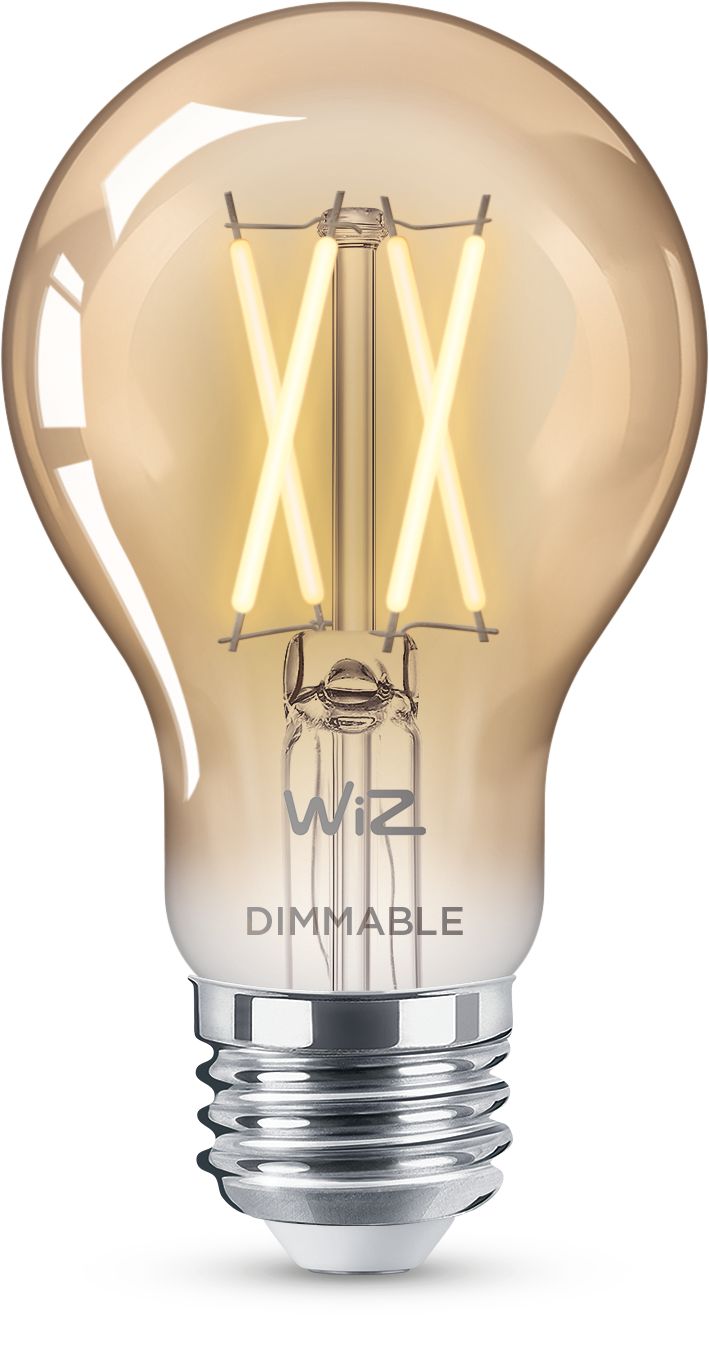 Disfruta más comodidad en la vida cotidiana con esta luz vintage inteligente WiZ LED A19. La apariencia clásica recubierta color ámbar es perfecta para las luminarias decorativas. Esta luz brinda una tonalidad blanca suave que se atenúa al nivel de brillo deseado mediante la aplicación o a través de la voz mediante una bocina inteligente. Puedes establecer el horario para encender o apagar las luces según tus rutinas diarias o semanales, y accede de forma remota a las luces incluso cuando no estés en casa. Las luces WiZ se conectan al Wi-Fi existente, sin necesidad de hardware adicional.