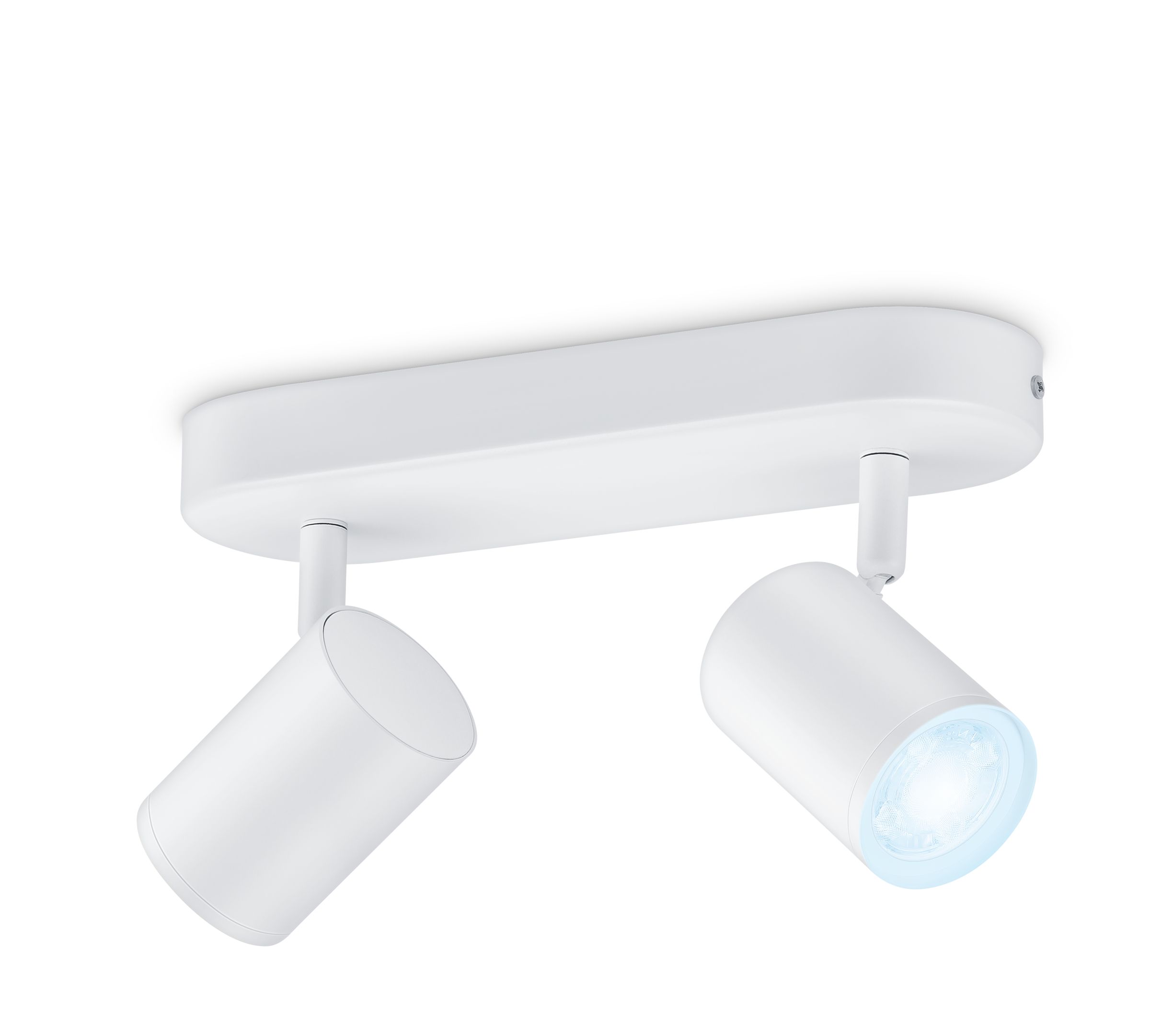 De WiZ Imageo witte slimme opbouwspot met een modern design en warmwit of koelwit licht heeft twee draaibare spots zodat je je ruimte met slimme verlichting kunt verlichten. Gebruik je WiFi-verbinding om de spot met de WiZ app of je stem te bedienen.