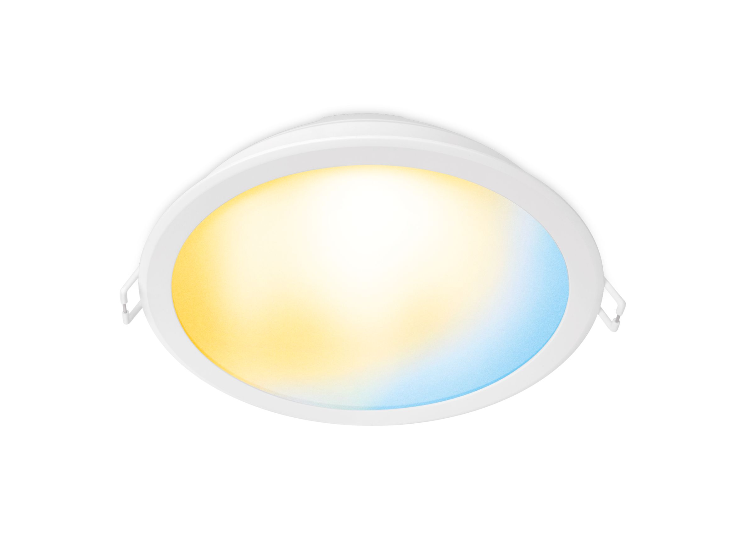 使用 WiZ 3.5 英寸的智慧型內嵌式下照燈,在早晨使用冷白光讓您更加清醒,或在漫長的一天後使用暖白光放鬆身心。此燈具已連接 WiZ。使用家裡原有的 Wi-Fi 透過 WiZ 應用程式或語音指令進行控制。